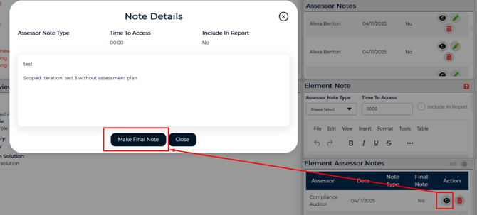 Users designated as a team lead can view notes from all auditors, delete notes and mark a single note as the final audit note. This is configuration is set within the Assessment Plan Details.