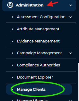 - Next, in the left hand menu, select Administration > Manage Clients. This will open the Application Settings area.