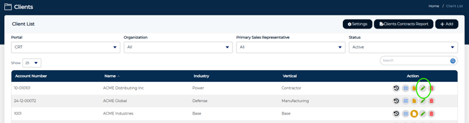 - Once within the Manage Clients area, choose the Client which you would like to configure and click the green pencil icon to edit that Client.
