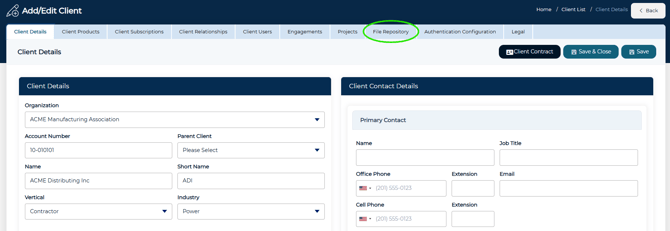 - Once in the Add/Edit Client screen, click the File Repository tab.