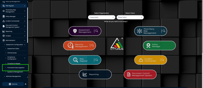 1. To access this tool, navigate to Administration> Assessment Configuration > Framework Data Ingestion: