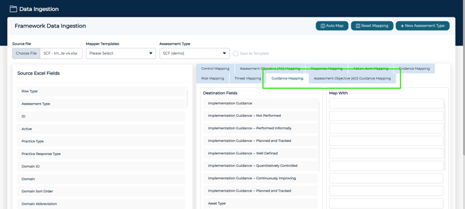 To use this capability, you must map the new guidance tabs to the corresponding columns in the import XLS file: