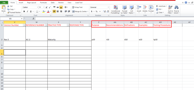 1. After the Guidance tabs have been defined, add the corresponding columns to the Excel file that will be imported: