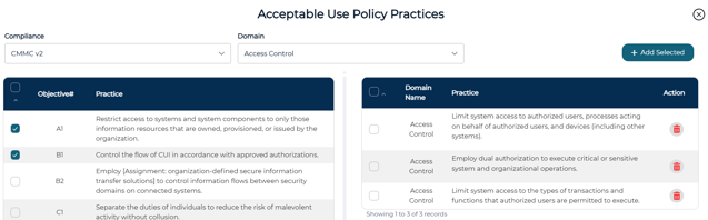 - Check the box next to each practice to be added