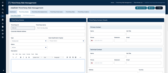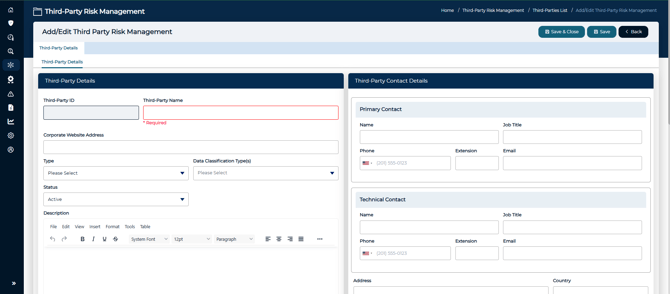 Once all required fields are completed, select Save to continue editing the profile, or Save & Close to return to the Third Party List.