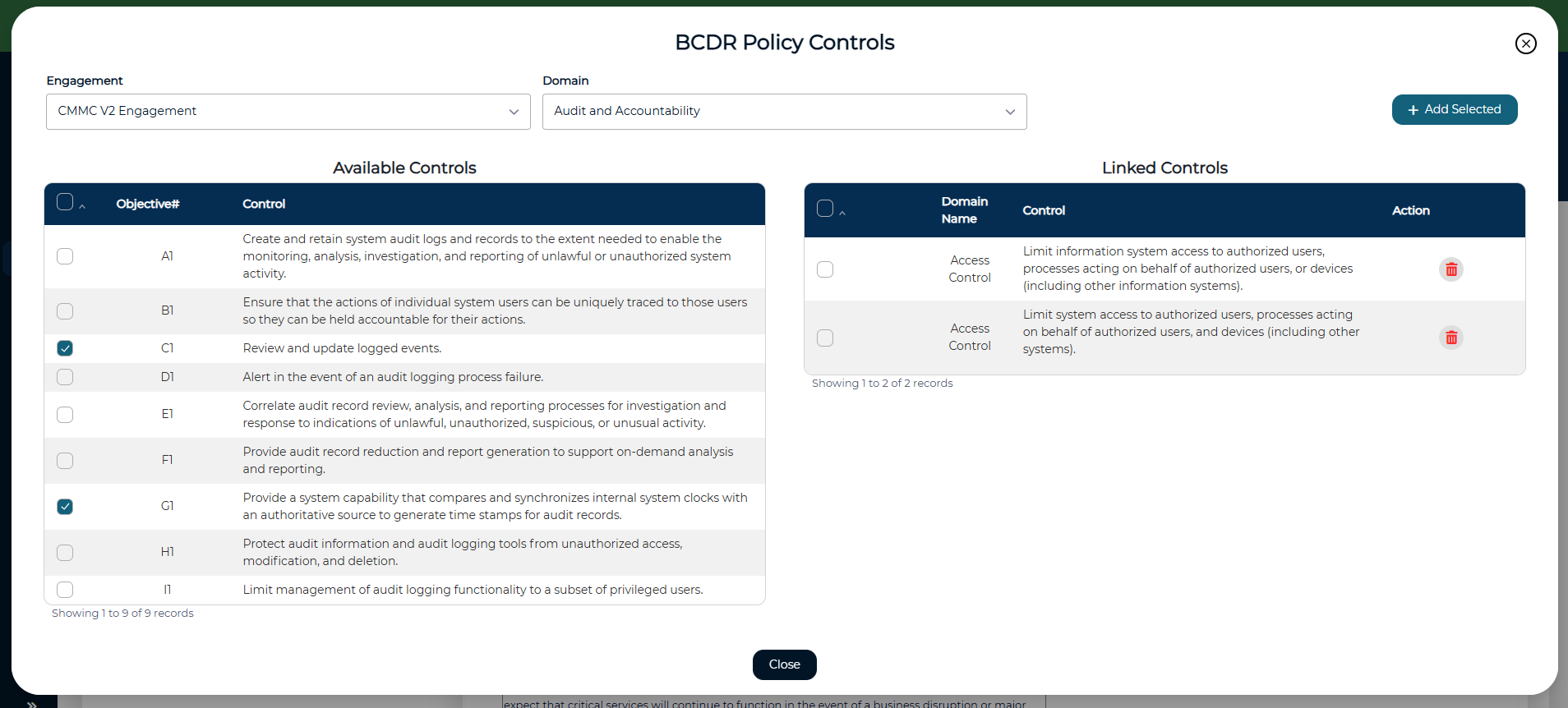 - Check the box next to each control to be added